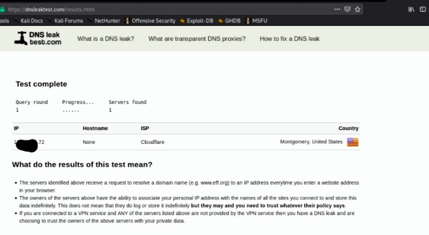 And in the browser tab opened visit https://dnsleaktest.com/ to do a DNS Leak Test.